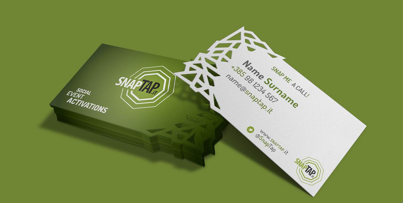 Learning from experience of memorability of Entrio business cards with our partners, I decided to explore the tactile experience further. Using shapes present in SnapTap's visual identity, these laser cut cards provide a unique sensation while being handled, differentiating themselves from most that might surround them.